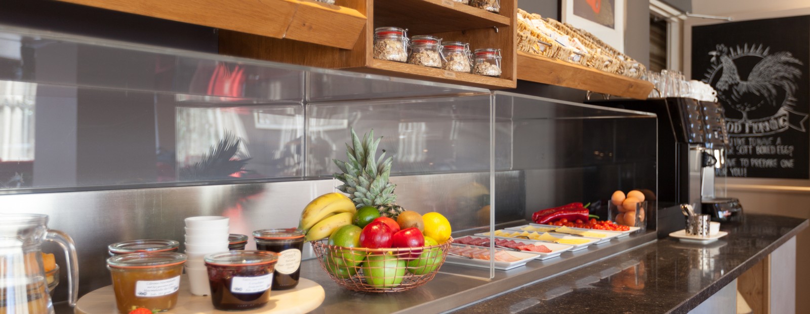 In de aan de tuin grenzende sfeervolle ontbijtzaal serveren wij u een gezond, uitgebreid en verantwoord ontbijt met biologische producten. Op verzoek houden wij rekening met bijzondere dieetwensen en allergieën. U kunt gebruikmaken van onze roomservice en het ontbijt op uw kamer laten serveren. Bij mooi weer wordt het ontbijt ook in de tuin geserveerd.